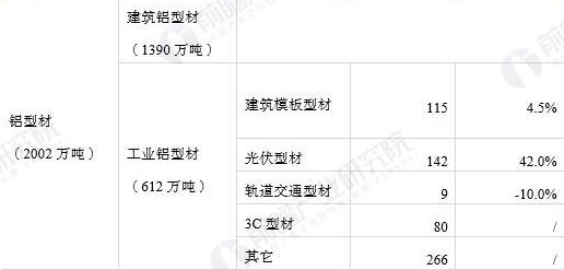 鋁型材細分種類產量如下