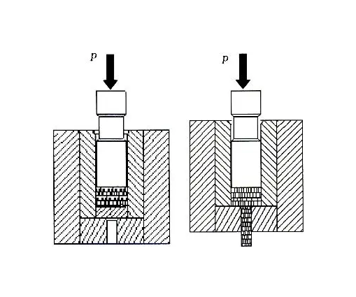 如擠壓比值選用過大,擠壓機(jī)會(huì)因擠壓力過大而發(fā)生“悶車”,使擠壓過程不能正常進(jìn)行,甚至損壞工具,影響生產(chǎn)率。